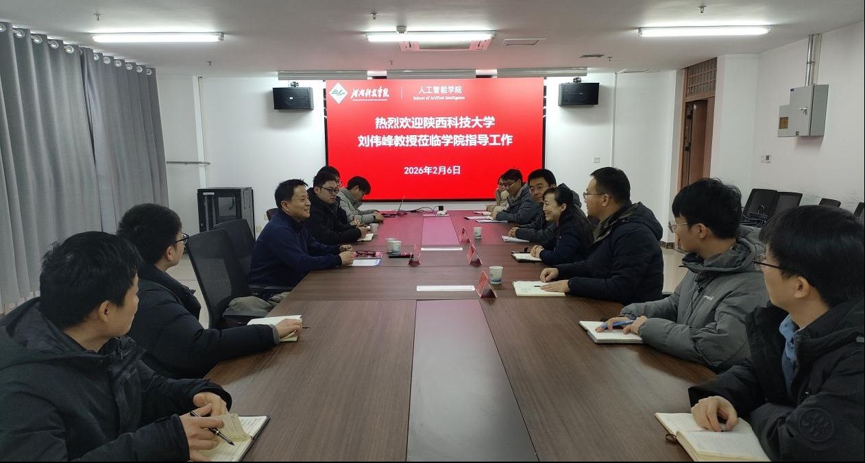 2026年2月6日,人工智能学院在弘德楼A205会议室举行2026年度国家自科基金申报校外专家论证会,特邀陕西科技大学刘伟峰教授指导。学院领导班子成员、全体基金申报教师参会,会议由学院院长蔡磊主持。