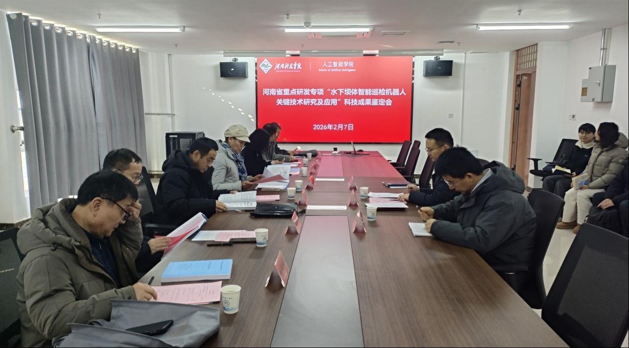 2月7日上午,河南省机械工程学会在我院召开河南省重点研发专项“水下坝体智能巡检机器人关键技术研究及应用”科技成果鉴定会。会议成立鉴定评审专家组,由郑州轻工业大学王良文教授、河南师范大学高书燕教授、河南省科学院宋晓辉研究员、河南工业大学吴兰教授、陕西科技大学刘伟峰教授等单位专家组成。河南省机械工程学会秘书长李剑、办公室主任王彦亭、项目核心完成人员参加鉴定会。