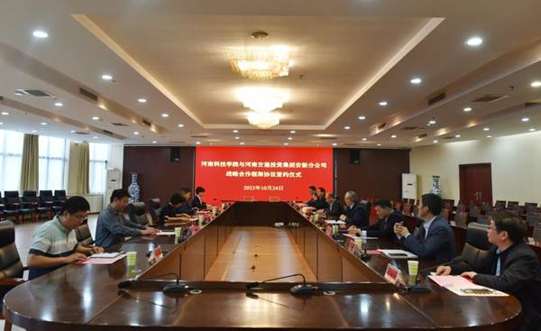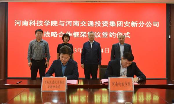 10月24日下午,我校与河南交通投资集团安新分公司战略合作框架协议签约仪式在办公楼206会议室举行。校领导宋亚伟、姚刚,河南交通投资集团领导王海燕、李习之等出席签约仪式,我校相关职能部门、部分学院负责人参加仪式。仪式由校长办公室负责人主持。