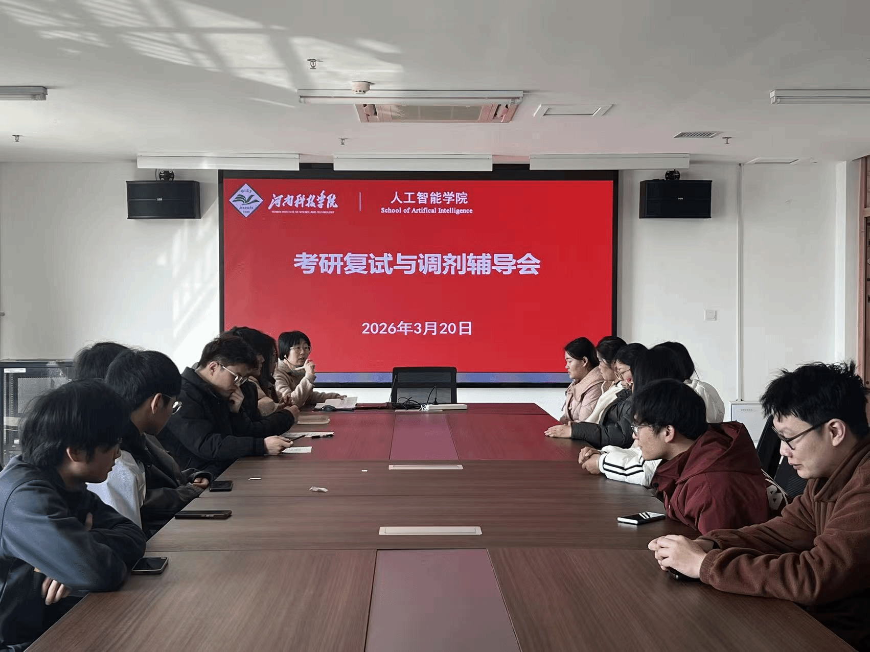 为帮助2026届考研学生提高复试能力、掌握调剂技巧,3月20日上午,人工智能学院在弘德楼A205举办2026届考研复试与调剂辅导会。