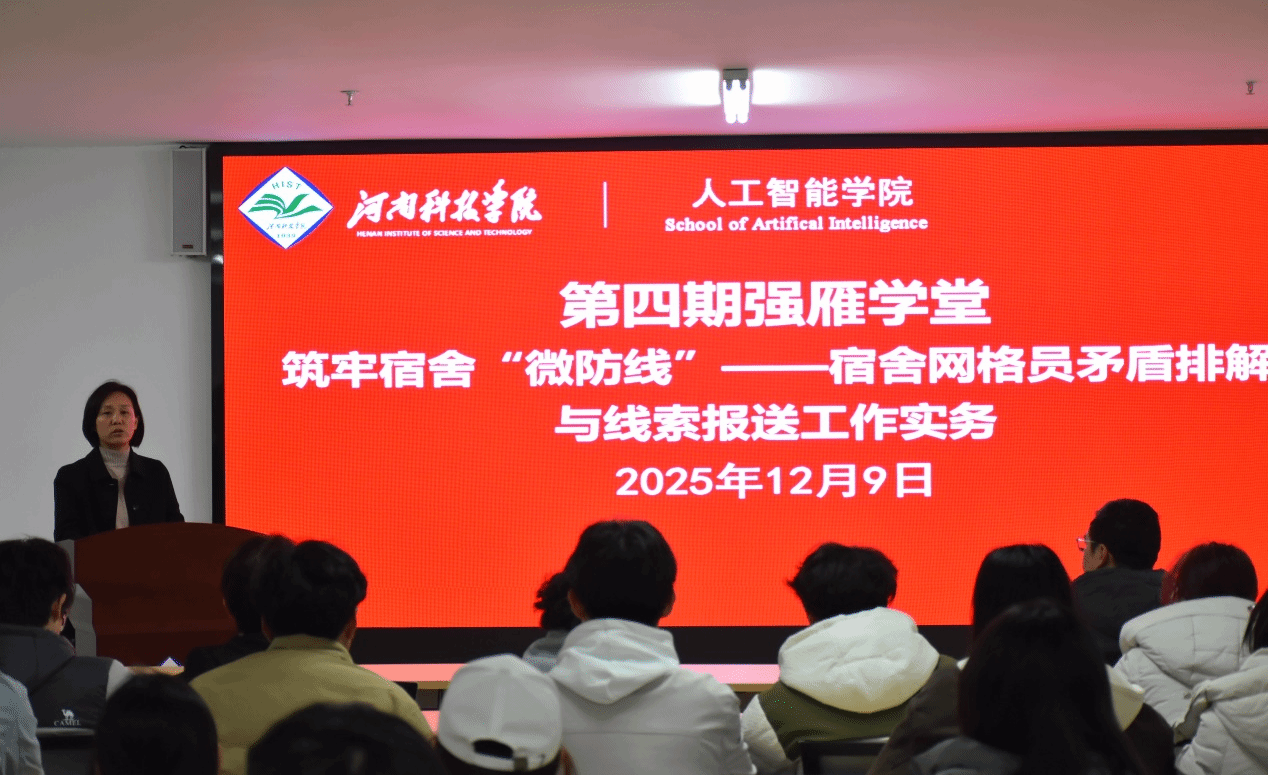 通过本次强雁学堂,我院网格长、网格员系统掌握了宿舍矛盾化解与线索报送的实务方法,进一步深化了对宿舍管理工作的认知定位与责任意识。未来,学院将持续聚焦宿舍网格长、网格员的能力短板,推出更多精准化、实务型培训,以“小网格”撬动“大治理”,为营造安全、和谐的宿舍氛围筑牢根基。