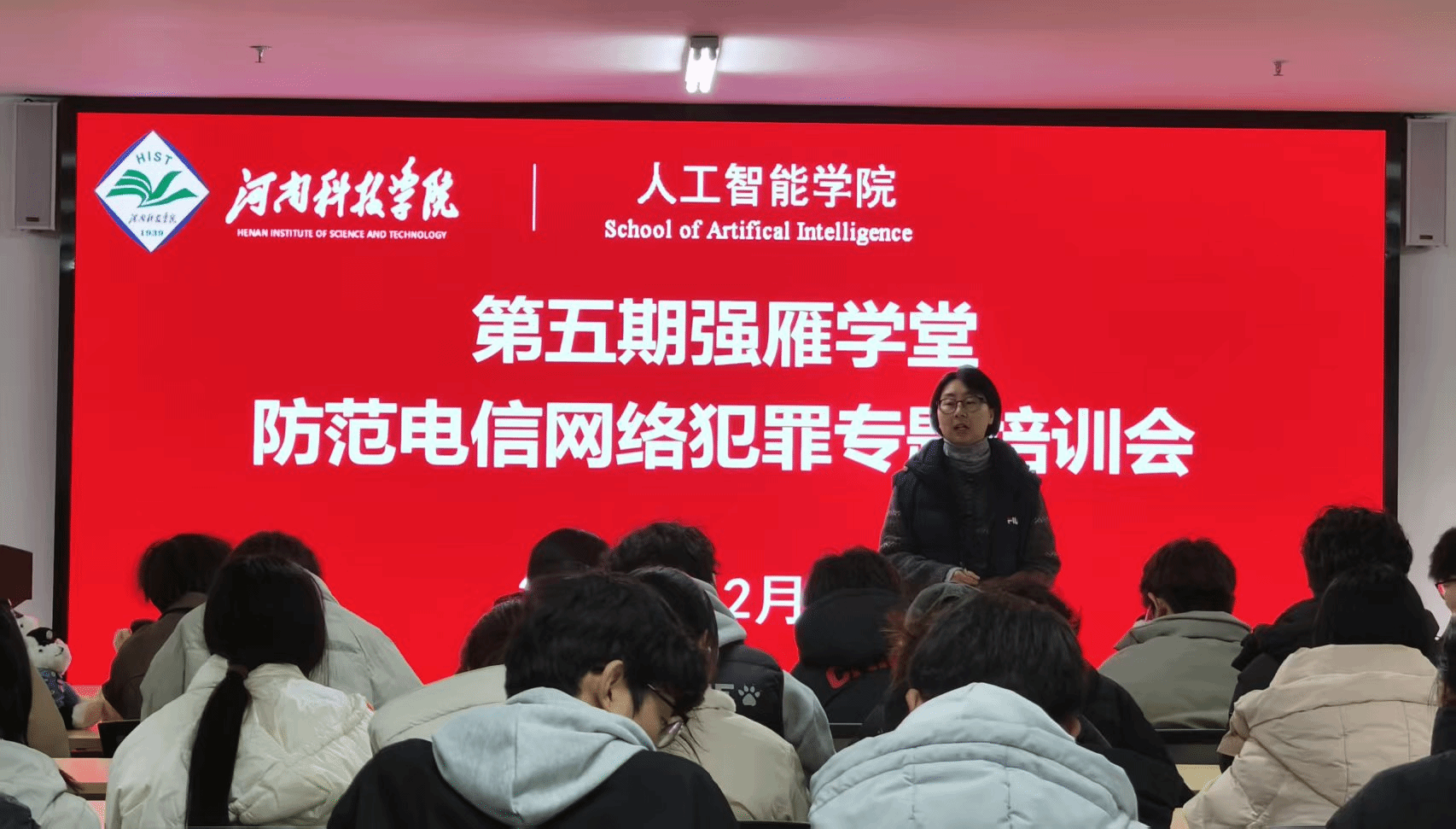为增强学生的网络安全意识,提升防范电信网络犯罪的能力,12月23日,我院在弘德楼B310举行第五期强雁学堂。本次会议邀请河南科技学院保卫处治安交通科副科长郎保清为我院学生开展防范电信网络犯罪专题培训会。学院团委书记郭小月、辅导员卢留洋以及学院全体宿舍网格长、网格员参会。